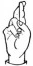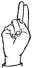 На ћирилици написано ХРАНИМИР ВЕСЕЛИНОВИЋ састоји се из 19 слова [?]. Исписано ћириличном једноручном азбуком за глувонеме: